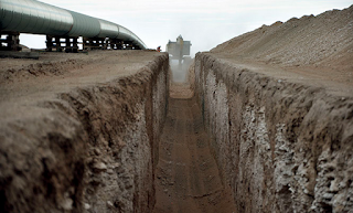 The pipeline had been placed and covered with soil. Workers were smoothing dirt on top of the new pipeline when a driver operating a large construction machine did not see one of two workers walking next to it and ran into him.