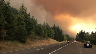 By 5:30 pm Saturday, 153 hikers were stranded by fire and smoke on the Eagle Creek trail—a steeply graded hike with 200-foot cliffs on one side. They headed uphill and huddled outdoors overnight.