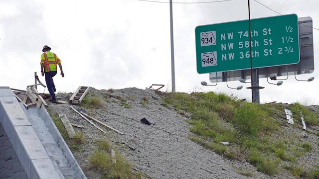 This is the second time in a week in which a construction worker has been injured on a Miami-Dade County road. A man plunged off State Road 836 on Oct. 11 after a truck toppled on its side at the edge of the expressway.