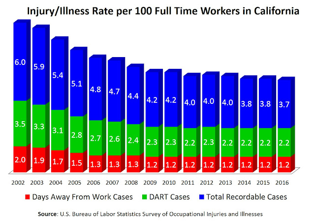 California’s Nonfatal Worker Injuries, Illnesses Level in 2016