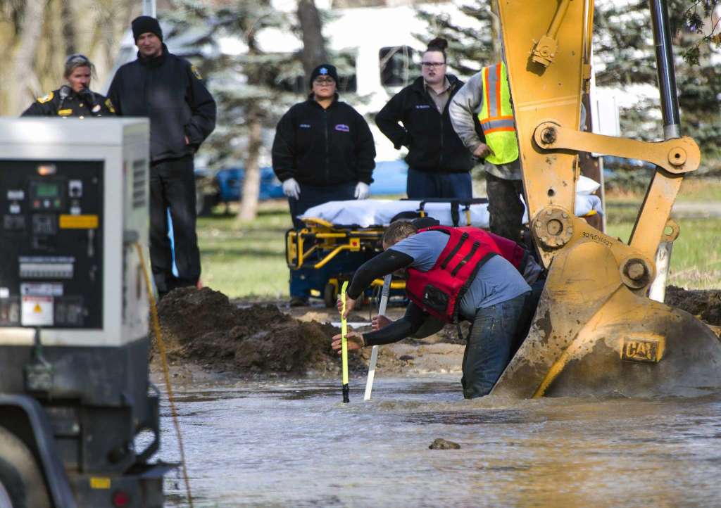 BURTON, Mich. (AP) — Police say a 33-year-old Flint-area man was critically injured after being trapped underwater for about 20 minutes when a water main burst during construction work.