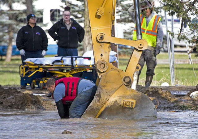 "This isn't clear water, this is basically brown mud, sludge that he was trapped in the bottom of. The dive team was in route, workers were able to snag him with a pole and retrieve him from the bottom of the hole," said Osterholzer.