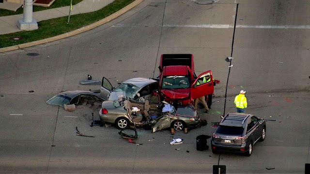 The truck was headed north on Midwest Road and went through a red light at 22nd Street, said Oak Brook Police Officer Garrett Church. The truck hit the Prius, along with a Ford Taurus carrying two Chicago residents, ages 52 and 57, and a gray Lexus driven by a 74-year-old Hinsdale man, Church said.