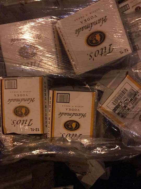 The truck was carrying boxes of bottles of Tito's Handmade Vodka out of Austin, Texas.