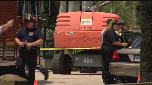 In an attempt to save Crenshaw, the fire department blew out the tires of the lift, owned by Southern Gulf Equipment, to help unpin him.