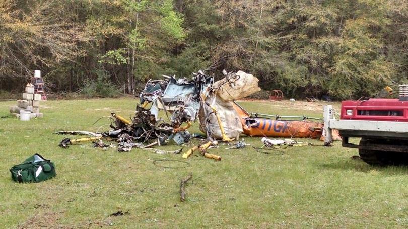 When the pilot did not check in with the communications center as he was required to do, a search was started for the missing helicopter. The wreckage was found the next morning on County Road 615 near County Road 603 in the Goodman Community.