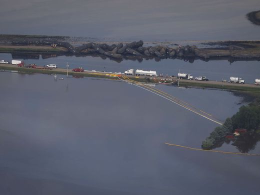 gallons (870,619 liters) of crude oil spilled into floodwaters in the
