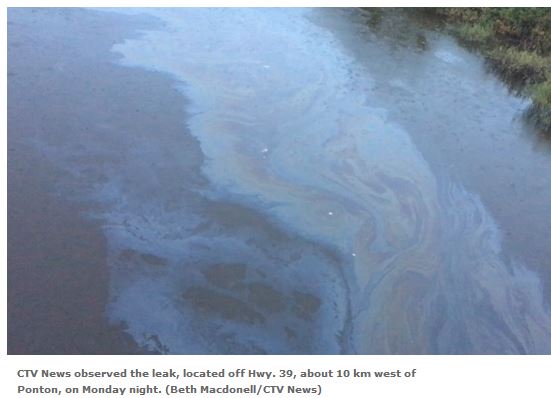 CTV News observed the leak, located off Hwy. 39, about 10 km west of Ponton, on Monday night.