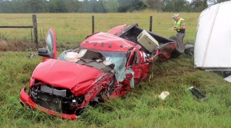 Troopers say a Ford F250 pickup driven by Travis Layne Jordan,18, of Devers, was traveling south bound when it crossed over into the north bound lanes and struck a Dodge pickup towing an RV and driven by Robert Alan Beard, 48, of Tyler.