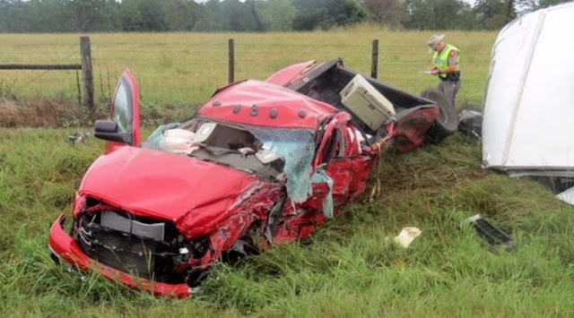Travis Layne Jordan,18, of Devers, Texas was killed in the head on collision. He was most likely speeding, considering the massive damage he did to the Dodge pickup truck.