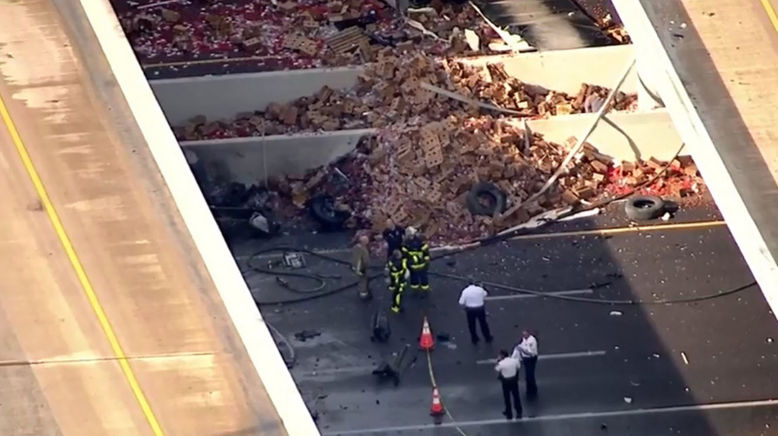 One dead after truck plummets off I-75 overpass, catches fire
