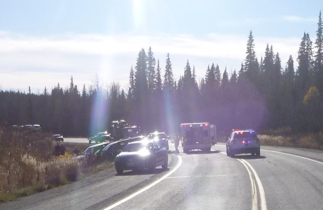 A spokesperson for Alaska State Troopers says the crash was called in at 3:01 p.m. At least one LifeMed air ambulance was on the way by 3:40 p.m. An updated Trooper Dispatch posted just before 4 p.m. said two more people with serious injuries were being taken by medevac.
