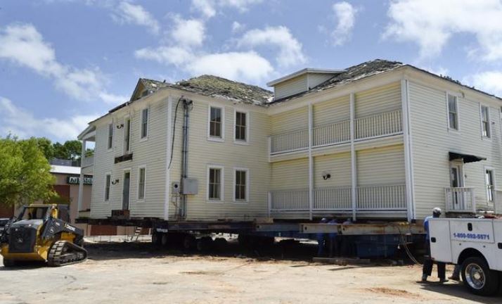 The fall occurred at a pole on the south side of U.S. 98 across from the Circle K convenience store and Gulf Coast Seafood Market, the press release said. The hotel already had been moved beyond that spot when the accident occurred.