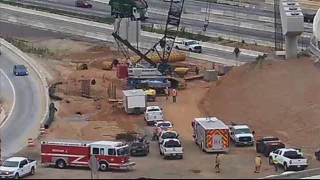 The incident was reported as an "accident involving construction debris" around 2 p.m. on Tuesday. Multiple fire engines and EMS were visible on scene.